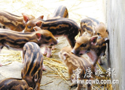 過上一個(gè)多月,雜交豬身上的條紋越來(lái)越粗,像斑馬一樣。市自然博物館動(dòng)物專家胥執(zhí)清分析認(rèn)為,等這批小豬長(zhǎng)大之后,條紋又會(huì)消失,變成普通的淺黑色。為什么會(huì)出現(xiàn)這種毛色變化?胥老師認(rèn)為,家豬和野豬都有某種毛色隱性基因,兩者近親結(jié)婚碰到一起后,隱性基因顯現(xiàn)出來(lái),就出現(xiàn)條紋。胥老師認(rèn)為這種雜交豬,仍然應(yīng)該叫野豬。 (劉邦云)
