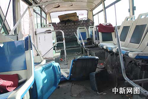 發(fā)生側(cè)翻的公交車內(nèi)景