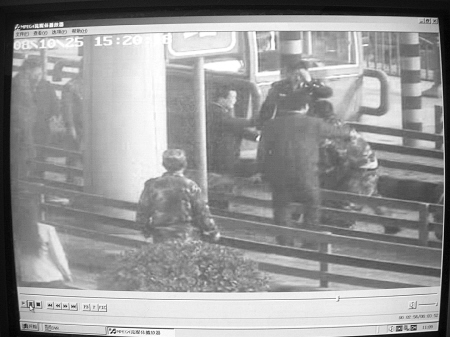 昨日上午10時許,記者在子午收費站監(jiān)控室看到了事發(fā)時的錄像資料。監(jiān)控錄像在不同角度清晰地記錄了一男子拒絕繳費,并毆打收費人員和民警的經(jīng)過。據(jù)錄像資料顯示: