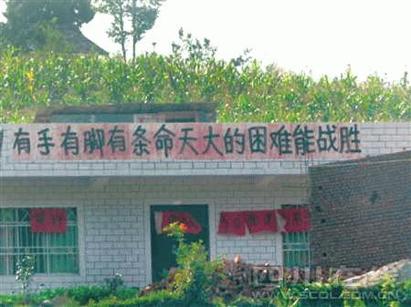 地震重災(zāi)區(qū)青川縣棗樹村的樸實莊稼漢,面對天災(zāi),他們原創(chuàng)的兩條標(biāo)語“吼”出了精氣神,得到了溫家寶總理的贊譽。昨日,“出自己的力,流自己的汗,自己的事情自己干”、“有手有腳有條命,天大的困難能戰(zhàn)勝”這兩條標(biāo)語,由青川縣政府捐贈給了地震文物指定征集單位——四川省文物考古研究院。據(jù)該研究院院長高大倫介紹,兩條標(biāo)語是該院收到的第一份災(zāi)后重建標(biāo)語文物,將被永久收藏于地震博物館。