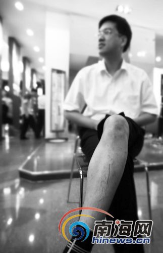 李先生腿上的傷清晰可見
