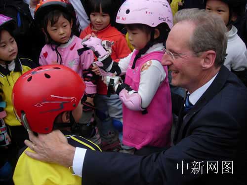 “洋市長(zhǎng)”與社區(qū)孩子們?cè)谝黄?br>