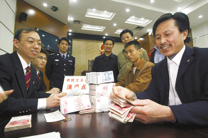 昨天下午2時(shí)許,運(yùn)鈔車押運(yùn)著50多萬(wàn)元現(xiàn)金和300多萬(wàn)元支票,開(kāi)進(jìn)市一中院。法院工作人員將10余名農(nóng)民工代表,召集到法庭內(nèi)逐個(gè)發(fā)放工資。