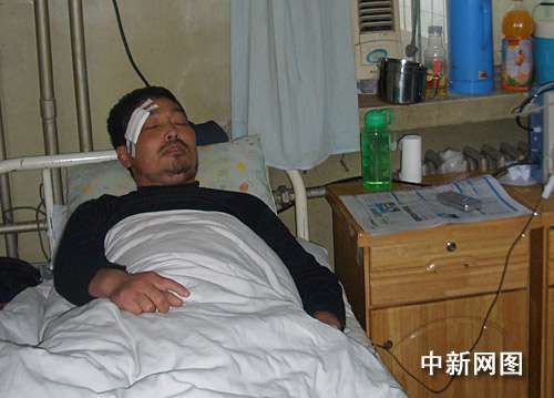 記者在石家莊市第二醫(yī)院骨科ICU病房見(jiàn)到霍辰輝時(shí),他的眼部因縫合傷口還蒙著紗布,頭部被打部位還沒(méi)有消腫,因腰椎骨折不能下床的霍辰輝無(wú)奈地講述著那天的遭遇。