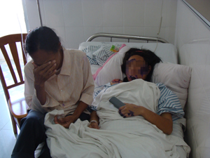 羅梅被送往昌江縣第二人民醫(yī)院治療后,一直昏迷不醒。她的家人日夜守候在身邊,心痛萬分,以淚洗面。