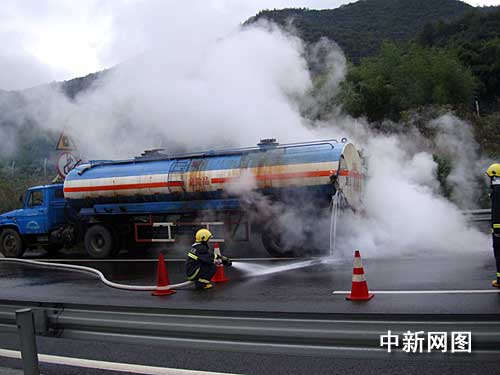 接到報警后,高速交警寧波支隊迅速啟動應急預案,組織警力以及溪口消防中隊、奉化市環(huán)保部門、施救單位等相關部門在第一時間迅速趕往現(xiàn)場進行處置。為了確保安全,高速交警到達現(xiàn)場后對事故現(xiàn)場進行了交通管制,同時在甬金高速公路往金華方向溪口出口對過往車輛進行分流。消防車到達現(xiàn)場后迅速展開施救,用車上的水和泡沫迅速對泄漏的濃硫酸進行稀釋,防止繼續(xù)擴散,同時組織相關人員對車上剩余的濃硫酸進行撥貨處理。經(jīng)過半小時左右的努力,泄漏的濃硫酸得到了控制,一個小時左右之后路面恢復了正常通行。