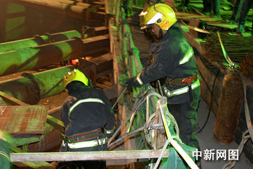杭州市公安消防局迅速在現(xiàn)場成立指揮部,出動 200余名消防官兵、25輛消防車及移動指揮車、應急照明車,組織官兵通宵達旦開展救援工作。15點34分,首批消防救援力量蕭山中隊、市北中隊6輛消防車已到達現(xiàn)場。官兵立即分兩組對現(xiàn)場進行搜索,對坍塌區(qū)域內(nèi)車輛進行逐一搜查。另一組在施工坍塌區(qū)進行現(xiàn)場搜救被埋壓,并成功救出多人。由于工地結(jié)構(gòu)性坍塌造成自來水鋼管斷裂,大量水涌出淹沒事故現(xiàn)場。鑒于當時水位較高且部分車輛已被完全淹沒的狀況,消防部門立即安排特勤一中隊2名蛙人攜帶水下照明燈具深入水下,對被困人員情況進行再次搜尋,并對倒塌區(qū)域水深度進行實地測量。同時先后調(diào)集20臺手抬泵,在坍塌區(qū)域周邊搭建抽水平臺進行作業(yè);另調(diào)集15臺潛水泵、6臺泥漿泵實施高密度不間斷抽水作業(yè)。