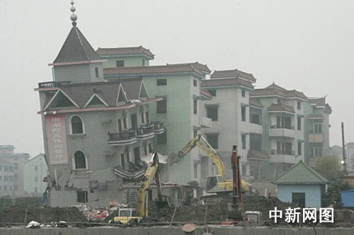 工作人員正在拆除一處民居。袁爽 攝