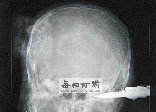 當(dāng)日下午3時(shí),記者在蘭州軍區(qū)蘭州總醫(yī)院安寧分院重癥室看到,受傷的學(xué)生正在搶救中。據(jù)了解,傷者是中午12時(shí)許被120急救車送到醫(yī)院的,除頭部受傷外,胳膊也有一處刀傷。經(jīng)檢查,傷者受傷位置是左側(cè)后腦勺,4厘米長的刀刃幾乎全部沒入后腦勺,長約5厘米的刀柄露在腦袋外面。傷者雖神志較為清醒,但隨時(shí)有生命危險(xiǎn),需要立即手術(shù)。