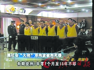 鄧偉波涉黑團(tuán)伙在廣州中院聽(tīng)判(電視截圖)
