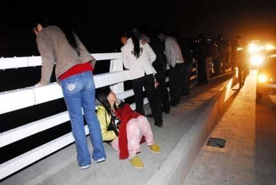 事情發(fā)生在22日晚10時(shí)許。記者當(dāng)晚趕到后渚大橋中段時(shí),橋欄邊站滿了圍觀的人,后渚邊防所、洛陽派出所以及豐澤消防大隊(duì)都趕到了現(xiàn)場(chǎng)。所有人都焦急地看著江面,此時(shí)正值退潮,水面距橋面約有十幾米,漆黑的水面上,完全找不到任何落水者的蹤跡。