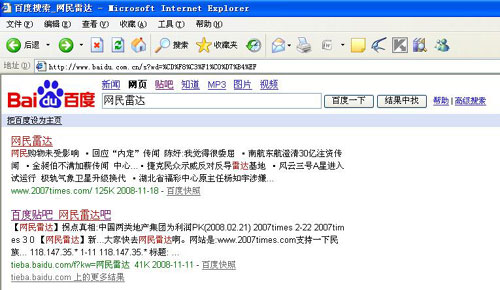網(wǎng)民雷達(dá)被迫成為百度競(jìng)價(jià)排名的用戶,繳納了3000元費(fèi)用。但是,不少反映網(wǎng)民雷達(dá)核心產(chǎn)品的關(guān)鍵詞卻被百度禁用。網(wǎng)民雷達(dá)退出競(jìng)價(jià)排名后,其在百度的網(wǎng)頁介紹內(nèi)容,變成了一大堆莫名其妙的新聞節(jié)選內(nèi)容,直到11月21日才更換成“思維互動(dòng)”等字樣。網(wǎng)民雷達(dá)表示,如果不是遇到業(yè)內(nèi)對(duì)百度競(jìng)價(jià)排名的抨擊,百度對(duì)網(wǎng)民雷達(dá)的“垃圾化”處理,還不知道要持續(xù)多久。