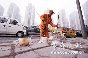 “他們吃了就往地上甩,從這里到轉(zhuǎn)盤,我掃一趟約1小時!弊虺8時許,北環(huán)收費站外清潔工彭昌德說。他說的這段路不到200米,他凌晨5時就前來掃街,來回清掃了8趟,每趟清掃垃圾超過15簸箕,滿滿1清掃車。