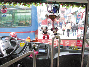 售票員小張卻認(rèn)為不僅是為了好看,而且還是識別標(biāo)志。她解釋說,以前乘客在車上丟了財物,由于公車沒有典型的標(biāo)志,給乘客尋找物品帶來了很多困難,F(xiàn)在添加了這些玩偶,也就為我們這臺車貼上了“識別標(biāo)志”。如果在這輛車上遺失物品,就會一下找到我們車。