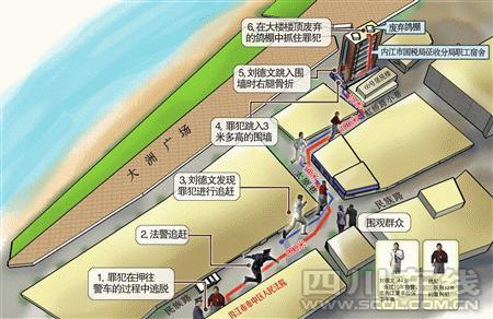 此時(shí),劉德文才發(fā)現(xiàn)自己孤身一人,追逃民警尚未到達(dá)。“決不能讓他跑了!”未及多想,他一頭鉆進(jìn)小巷,逃犯的身影再次出現(xiàn)在視線內(nèi)!罢咀,你跑不掉的!”就在劉德文快速靠近時(shí),慌不擇路的逃犯突然放棄小巷,縱身跳下一旁3米多高的圍墻,進(jìn)入全封閉的內(nèi)江市國(guó)稅局征收分局職工宿舍大院。