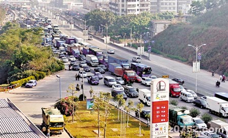 水牛擋道導(dǎo)致大堵車 施多多 攝