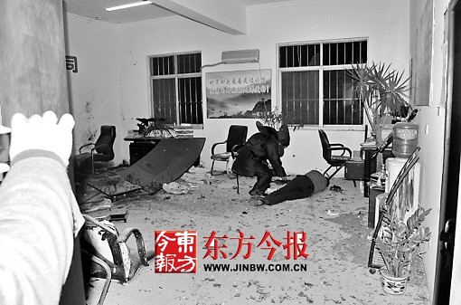 16時(shí)35分,民警向李聚財(cái)做最后的思想工作,讓其繳械投降。17時(shí),李聚財(cái)仍拒不繳械,且一再揚(yáng)言要引爆爆炸裝置。