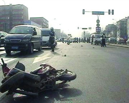 “騎車的男子已被120急救車?yán)吡!爆F(xiàn)場的張先生告訴記者,大約10點鐘,路上突然傳來急促的救護(hù)車警報聲,由遠(yuǎn)及近;還沒等他反應(yīng)過來,尖銳的剎車聲刺入耳膜,緊接著“咚”的一聲,張先生看到,一輛公交車前,一名騎電動車的男子連人帶車向北飛了出去,“一開始,我還以為是公交車撞的呢”。