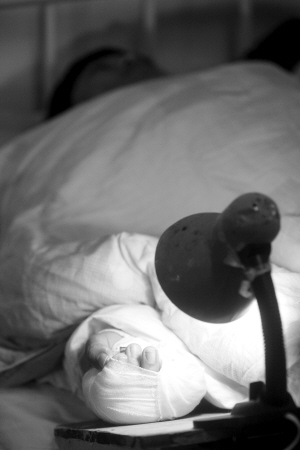 昨日,記者在醫(yī)院見到劉成剛,他躺在病床上,右手小指已經(jīng)接上,醫(yī)護(hù)人員表示,現(xiàn)在還需要經(jīng)過幾日觀察期,才能確定手指是否成功接上。