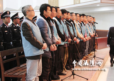 12月16日,廣西靖西縣人民法院在田陽(yáng)公開開庭審理以被告人陸進(jìn)猛為首的涉嫌黑社會(huì)性質(zhì)團(tuán)伙犯罪案件。該案被提起公訴的被告人多達(dá)16人,涉及組織、領(lǐng)導(dǎo)、參加黑社會(huì)性質(zhì)組織、尋釁滋事、故意傷害、故意毀壞財(cái)物等4宗罪名。