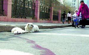 同伴遇車禍,先是在滾滾車流中舍命將其拖至路邊,然后伏在其身邊守望,親吻,試圖喚醒遇難的同伴……這一幕的主角不是人,而是一只普普通通的白色小京巴!3月1日下午1時許,青島大堯一路與逍遙二路路口上演了這感人至深的一幕,很多圍觀的市民唏噓不已,有的市民甚至當(dāng)場流下了同情的淚水。