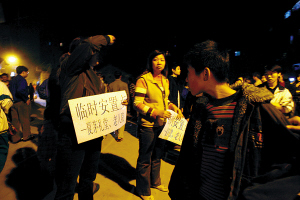 暫時(shí)無(wú)家可歸的居民都聚集在街邊觀(guān)望,夏茅村居民陳伯估計(jì):“封鎖那么大一片地方,少說(shuō)都有成千人回不了家!本用裥堑淖√巹偤迷诜怄i線(xiàn)上,他跟治保員央求了半天,也未進(jìn)得家門(mén),“只是想進(jìn)去拿點(diǎn)東西都不行”。一名治保員告訴記者:“因?yàn)榈叵輫?yán)重,有幾座樓傾斜了,現(xiàn)在靠近很危險(xiǎn),另外我們也怕有人借機(jī)行竊!