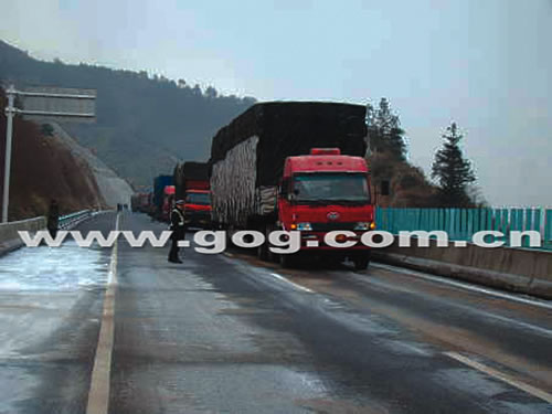 由于我省(貴州)貴遵、清黃、貴新、玉凱、貴開、水黃等高速(高等級)公路出現(xiàn)凝凍,為確保過往車輛安全,昨日凌晨至中午,這些公路相繼實(shí)行交通管制。直到下午14時,隨著氣溫回升,各條管制路段先后恢復(fù)正常交通秩序。