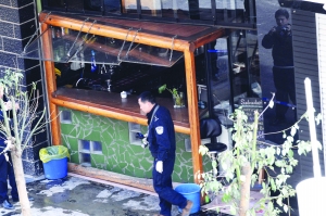 “我當(dāng)時(shí)聽到‘砰’的一聲巨響,接著看到一些碎玻璃飛到了保安室的門口”,楊谷平趕緊跑出去查看,看到咖啡吧后面右側(cè)的衛(wèi)生間窗戶冒出一股濃煙,但是沒有明火,而左側(cè)的廚房玻璃則完好無損。楊谷平立即與小區(qū)負(fù)責(zé)修理的物管一起,從前門沖進(jìn)咖啡吧,進(jìn)門看到屋里已經(jīng)濃煙彌漫,收銀臺(tái)的服務(wù)員正在驚慌地?fù)艽驁?bào)警電話,酒吧的負(fù)責(zé)人則束手無策地站在濃煙外圍。