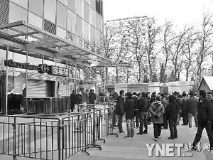 昨天上午10點(diǎn)左右,記者看到家樂福超市大門緊閉,門兩側(cè)各貼了一張解釋未能如期開張的告示。門前的圍欄里,一些工作人員正在向不斷趕到的顧客解釋關(guān)門原因。