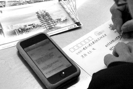 昨日,在鄭州市郵局舉辦的百人免費(fèi)給臺(tái)灣親友寄明信片現(xiàn)場(chǎng),何先生給臺(tái)灣的連戰(zhàn)先生寄去了祝福。