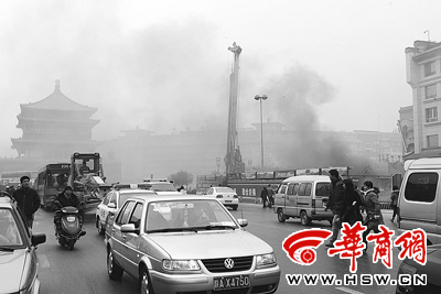 出事地點(diǎn)位于地鐵二號(hào)線鐘樓站右線隧道北端。上午10時(shí)20分許,記者趕到現(xiàn)場,看到坑道內(nèi)不斷向外冒黑煙,且越來越濃,濃煙順著隧道從20米外的另一出口排出,很快,鐘樓便籠罩在濃煙中,行人紛紛掩鼻而過。數(shù)名身著防護(hù)服背著壓縮空氣的消防戰(zhàn)士正在坑道作業(yè),一名消防戰(zhàn)士說,因?yàn)橹鹛幱姓系K物且濃煙影響視線,所以只能在外圍滅火。11時(shí)許,煙霧明顯減少。