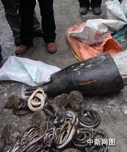 中新網(wǎng)吉林1月3日電(蒼雁)近千條野生錦蛇,一只海豚頭和刺猬在吉林市場被叫賣,1月3日,吉林市林業(yè)局稽查支隊查獲了這些在冬天里被捕殺的珍貴野生動物。