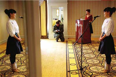 昨天下午1點(diǎn),在長富宮飯店水蓮廳內(nèi),記者看到了20名年輕女孩面容姣好,衣著、面部均進(jìn)行了精心修飾。主辦者介紹稱,她們就是參加這次“東方淑女甄選之旅”的20名參賽選手,其中的14人是來自北京各大高校的在校生。