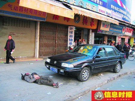 據(jù)停在路口待客的一些“摩的”司機(jī)透露,這名男子在此流浪已有五六年時間了,他平日里也不向人乞討,就靠好心人接濟(jì)為生,晚上就睡在路邊店鋪門前。當(dāng)時那輛小轎車停在人行道上,車主先是下車去買東西。過了不久,那名流浪漢走到離車頭前幾步遠(yuǎn)的地方躺在地上,閉起眼睛曬起“日光浴”,似乎已經(jīng)睡著了。后來轎車司機(jī)回來開車,卻沒有注意到車前竟躺著一個人,無情的車輪軋過流浪漢的頭部,他一聲都沒發(fā)出就送了性命。幾個過路人合力將車頭抬起來,發(fā)現(xiàn)他已經(jīng)沒氣了。