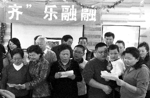 大年初一,北京電視臺春晚播出的同時,在節(jié)目里亮相的124人大家庭也舉辦了第9屆“家庭春晚”。前晚,在房山一度假村內(nèi),“家庭成員團(tuán)拜會”的橫幅拉起,一塊大紅綢子鋪開,每個到來的家庭成員都要簽到。家庭成員齊申寅介紹,這是2001年以來的第9屆“家庭春晚”,124名家庭成員里的五十多人到場,年齡最大的92歲,最小的兩歲半。