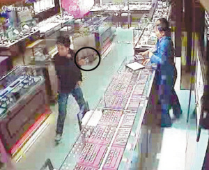 “這人我有印象,他以前來過店里!狈磸(fù)看了幾遍監(jiān)控錄像后,店長鄭小姐突然說。鄭小姐說,這名黑衣男子去年臘月底曾到過店內(nèi),當(dāng)時他穿的是一身運動裝,同來的還有另一名青年男子,兩人進店后看了兩三個小時,詢問了上10種珠寶首飾的價格,但什么都沒買,她和另一名店員還曾報怨過,所以印象較深。