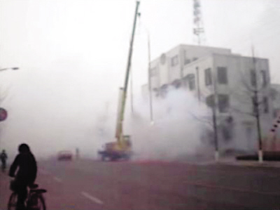 有網(wǎng)友稱,這是湖南省瀏陽市某機(jī)關(guān)單位門口燃放鞭炮的景象。短片中,大吊車用起重臂掛起兩串鞭炮,高約10米。鞭炮燃放時(shí)產(chǎn)生的濃煙將路面遮蓋,能見度很低,一些過往的車輛不得不將霧燈打開。