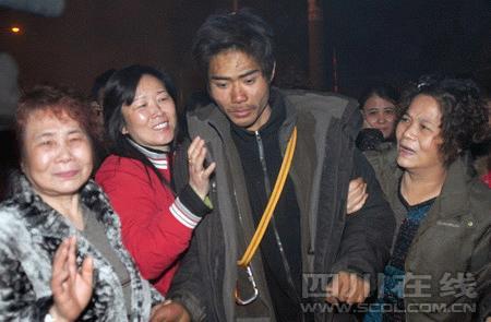 “超超回來了!”昨晚7時,在劉亞超家院子的大門外,除了家人,還有四五十個鄰居也在等待劉亞超歸來。“沒有睡袋,那里下大雪,我們請教過專業(yè)人士,能生還是‘奇跡’。”徐女士說,劉亞超和王興波失蹤后,他們曾多次通過網(wǎng)絡(luò)尋求幫助,這些天來,全家人都在盼望奇跡出現(xiàn),希望兩人平安生還。因?yàn)槭芏萝囉绊,同去接劉亞超的堂哥先到家了!靶尤苛验_了,褲子爛完了,身上有不少傷口,他媽媽一看到他就沖上去大哭!眲⒌奶酶绺嬖V記者,劉亞超的精神狀態(tài)還不錯,見到親人,他第一句話是,“曉得家里人擔(dān)心,我不會死在外面的,我想你們,我一定會堅持活著走出來!弊蛲8時30分,為了迎接劉亞超平安歸來,鄰居將長長的鞭炮鋪在地上,準(zhǔn)備點(diǎn)火。10多分鐘后,接劉亞超的車開過來了,所有人沖了上去,鞭炮聲同時響起!盎貋砹!”親人們與劉亞超擁抱著,哭成一團(tuán)。