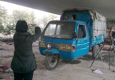 在江陰朋友的幫助下,姜女士在江陰西郊的五星橋下,親眼看見4名中年人將至少七八名孩子安置在幾輛破舊的小貨車?yán)锷,還要求他們學(xué)習(xí)下跪、唱歌等行乞“技能”。