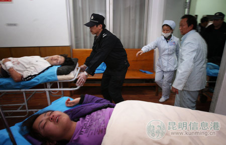 當(dāng)晚22時35分4名傷者被送往云南省第三人民醫(yī)院搶救。其中王文艷于10日上午11時22分經(jīng)搶救無效死亡;另一男性傷者受左心包破裂傷、肺裂傷、膈肌穿通傷、胃穿通傷,仍未脫離危險。