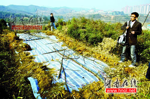望城某鎮(zhèn)(出于保密需要,此處隱去鎮(zhèn)名)文化專員向記者介紹了該鎮(zhèn)墓葬被盜的情況。2009年1月20日左右,鎮(zhèn)子某村的村民發(fā)現(xiàn)某山頭幾個(gè)晚上都是凌晨的時(shí)候有燈光。村干部起初以為是誰想偷偷土葬親人,就報(bào)告了政府部門,“等公安、民政部門的人上山一看才發(fā)現(xiàn),只有一個(gè)大洞,什么都沒有,后來叫了文物部門的人過來,才證實(shí)是盜洞。不過文物部門表示,該盜洞打偏了,沒有觸及墓室!痹撐幕瘜T還表示,“我們知道周圍是文物保護(hù)區(qū),一直以來我們都是實(shí)施秘密保護(hù),除了政府部門和文物部門,當(dāng)?shù)貨]有人知道周圍有墓葬,這回出這個(gè)事情,我懷疑是內(nèi)部走漏了消息!