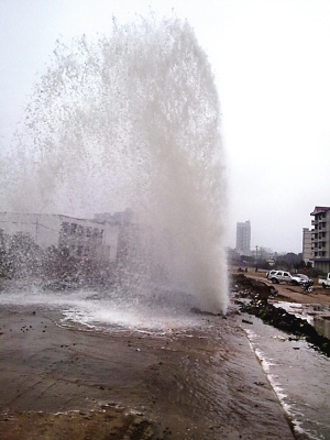 “先是聽到吱吱吱地響,馬上要到10點(diǎn)時(shí),突然‘砰’的一聲后,一股水柱就沖上天了!60多歲的黃婆婆當(dāng)時(shí)在現(xiàn)場,據(jù)她介紹,沖天水柱有人的大腿粗細(xì),“起碼有十多米高!