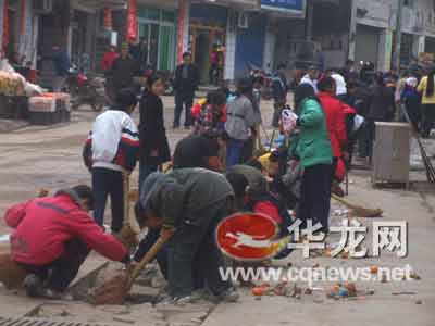 記者在現(xiàn)場(chǎng)看到,現(xiàn)場(chǎng)用手撿垃圾的全是學(xué)生,而政府工作人員、居委會(huì)干部、機(jī)關(guān)干部和街道居民,則站在旁邊旁觀,樣子象看熱鬧似的。一位著工商制服的旁觀者,指著已經(jīng)打掃干凈的街道和尚未填平的水溝對(duì)記者稱:“你看,學(xué)生們做衛(wèi)生就是好,打掃得相當(dāng)干凈。”