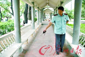 昨天中午,記者來(lái)到虎門執(zhí)信公園找到該公園的保安隊(duì)長(zhǎng)劉建洪。據(jù)劉建洪介紹,事發(fā)當(dāng)天晚上10時(shí)左右,正在執(zhí)勤的保安朱澤兵,突然看見公園的樓亭上圍有許多人。他立即跑前去,看見一名年輕女子滿臉都是血,尤其是其左臉有一處很長(zhǎng)很深的傷口。當(dāng)時(shí)該女子滿臉是血,正用手機(jī)給她的工友打電話:“快來(lái)救我,快來(lái)救我,我快死了……”說(shuō)完話,那女子便暈倒了。朱澤兵當(dāng)即用手機(jī)撥打110報(bào)警電話及120急救電話。他還叫來(lái)了多名在公園練習(xí)舞蹈的學(xué)生,一起抬起暈倒的女子跑向虎門醫(yī)院。