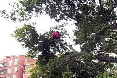 樹枝離地三四米,地上都是來來往往的車流,摔下來,肯定出大事。謝先生一想,就報了警。