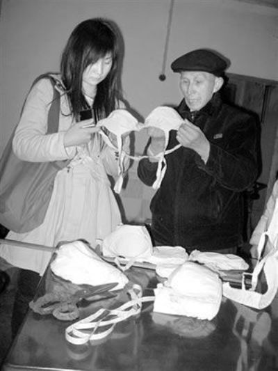 傍晚,大爺在桌子上堆起一大摞成品胸罩,都是樣品。大爺說(shuō):“從4寸到8寸的都有,你看這做工!”“我只懂A杯、B杯啊!”說(shuō)完這話的劉梅,看到大爺一臉茫然。傳統(tǒng)的尺寸和現(xiàn)代的“杯標(biāo)準(zhǔn)”成為老少兩代人的第一道難題。“就是從最小到最大嘛,簡(jiǎn)單,下來(lái)慢慢換算。”3人和冉大爺?shù)溺蹆合敝艽蠼阋黄鸺?xì)化即將開(kāi)始的工作。周大姐當(dāng)“打工”,兩個(gè)同學(xué)負(fù)責(zé)把信息上傳貼吧并建起一個(gè)網(wǎng)店!25-80元一個(gè),純棉面料環(huán)保,手工制作個(gè)性,對(duì)于一大一小或單邊的客戶更是長(zhǎng)項(xiàng)!边@是他們初步的網(wǎng)絡(luò)宣傳詞。