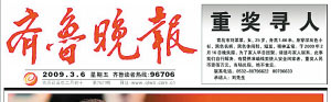 3月6日,這例廣告刊登在《齊魯晚報》報眼位置上,同一天,青島交通臺也在播放這則《重獎尋人》廣告。
