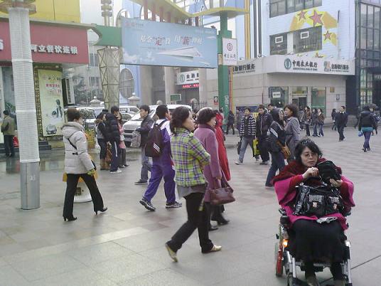 “救救這個22歲的新娘子吧,謝謝你的愛心。”殘疾人劉冰心坐著電動輪椅在青島市區(qū)為白血病新娘高俊峰奔走呼告,籌集“善款”。