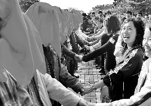 “兩個(gè)男孩都那么喜歡你,你看,喜歡誰(shuí),挑誰(shuí)?”“你們?cè)貾K一次吧!弊蛉沼蓮V東省民政廳婚姻家庭建設(shè)協(xié)會(huì)、廣東省旅游協(xié)會(huì)主辦的“廣東浪漫之旅——拍拖運(yùn)動(dòng)會(huì)”在廣州東湖公園舉行,吸引了上萬(wàn)名單身青年參加,其中“兩俊男同爭(zhēng)一美女”的現(xiàn)實(shí)情節(jié),更是把相親活動(dòng)引向了高潮。組委會(huì)以參加活動(dòng)單身朋友“100%實(shí)名制”的方式,履行“非誠(chéng)勿擾”的打假主題精神,杜絕諸如騙婚、假相親、媒托兒等案件發(fā)生。