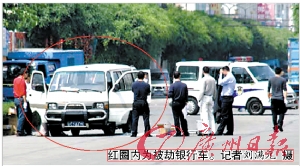 隨后,面包車上下來兩名男子,他們立即向警方報警。隨后大批民警及治安隊員趕到事發(fā)現(xiàn)場進(jìn)行調(diào)查取證。